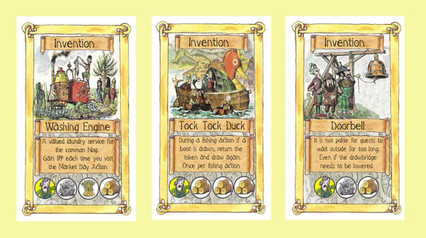 This is a mini expansion consisting of three new invention cards which are added to the inventions deck of the main game. Based upon three erstwhile 'forgotten' Noggin stories from books published in the 1960's.