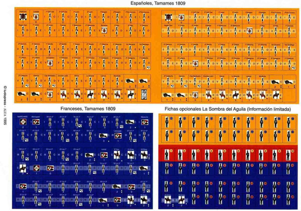 Tamames 1809, scenario for the Shadow of the Eagle series. An optional rule and 60 unmounted markers to simulate Fog of War in that series limited intelligence is included). The game includes 1 DIN A3 map and 86 unmounted counters.