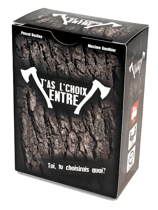 T'as l'choix entre is the Quebec version of the trashy and disgusting dilemmas Would you rather. Win points by making funny comments while everyone discuss one of the numerous dilemmas. Make your guests die of laughter or make them cringe. But beware, this is a game for very mature audiences!