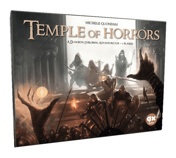 Temple of Horrors is an innovative dungeon crawler game where typical Euro game mechanics mix with American style. The game can last up to 14 rounds. In every round, the opponents will be stronger and more challenging to win. Each Hero has their powers and abilities and can improve them during the game, gaining experience points, choosing how: by this way, each Hero is different in every game. Magic Items, potions, weapons will improve and differentiate each character more.