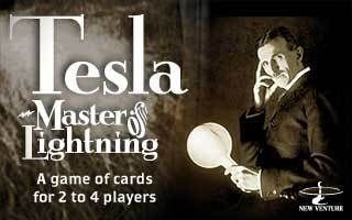 The 144 cards in the deck depict events in the amazing life of the great electrical genius, Nikola Tesla, one of the inventors of our modern age. Following the successes and pitfalls of his life story, each player in this game attempts to accumulate the greatest amount of Voltage (victory points) before the deck runs too low.