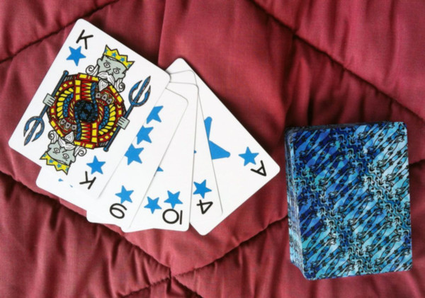 The Blue Sea Deck stands in that long tradition. Here the fifth and sixth suits are the blue suits of Stars and Squids. You can use the deck for playing Bridge with six, for making the odds in Poker go haywire, or for tossing card by card into a top hat.