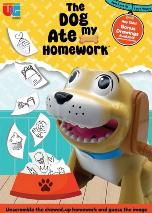 Step 1.) Feed him the homework. The Dog Ate My Homework comes with 100 Homework Sheets with more Homework Sheets available online for download at the University Games website.