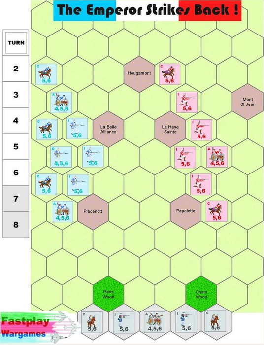 The Emperor Strikes Back is a simple wargame simulation of the Battle of Waterloo in 1815 that finally ended Napoleon's dream of French dominance.