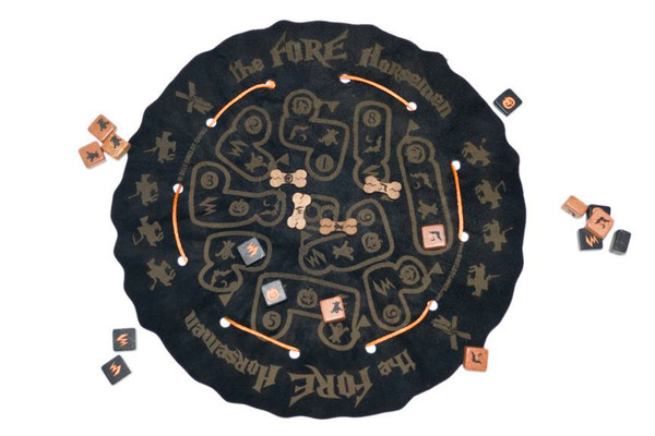 You and your fellow horsemen start the game on the first hole. Each turn you roll your bones and move by matching the symbols on the board. But, winning isn't easy against cheaters like the horsemen! Use your "FORE! stones" whenever you want to instantly knock another horseman's ball back to the last hole.