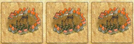 The player may elect to deploy a follower to the city instead of hanging a follower. If he wishes to do this he uses the tile as a regular tile and according to the usual rules of deployment. A deployed follower in this case must be placed on the tile but outside of the gallows area and on the city segment of the tile. This tile with gallows takes no further part in the game, and no player is able hang a follower using this tile with gallows on any subsequent turn. If there is a hanged follower in the gallows area, it is possible to deploy a follower to the city segment of the tile, as a hanged follower cannot control the city.