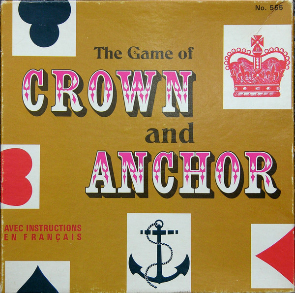 Crown and Anchor is a pure betting game involving 3 dice with symbols on them: Heart, Club, Diamond, Spade, Crown and Anchor. (The Flemmish version called "Anker en Zon" had a 'Sun' symbol instead of the 'Crown'.)