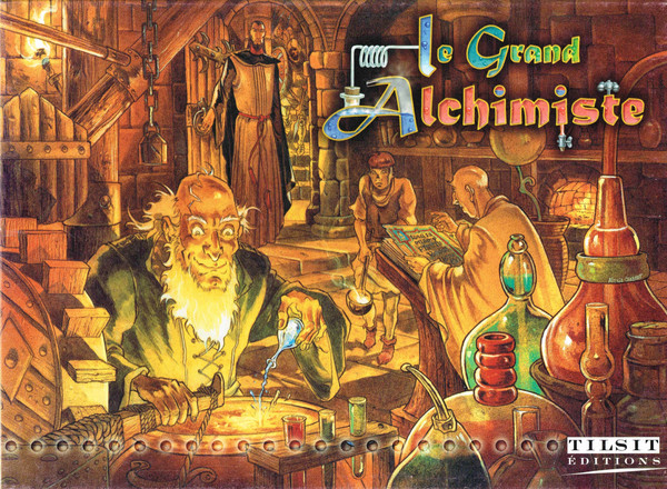 You control an alchemist and two apprentices. They will move around a map of Europe to various cities and gather knowledge cards. Getting a certain number allows you to attempt a transmutation. Keep the location of your secret lab from the Grand Inquisitor and other players to avoid going to trial (jail) and losing knowledge cards. Event cards in the game allow you to search, protect yourself, move further, steal from other players, take shortcuts, increase your strength in a fight, etc. The final objective is to successfully complete enough transmutations to collect 5 bars of gold.
