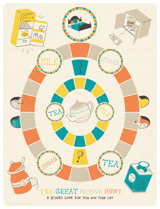 In our custom-made board game, you get to be a cat stalking the kitchen for prey, or a mouse, desperate to be the first to make a cuppa tea for yourself and your mouse-spouse.