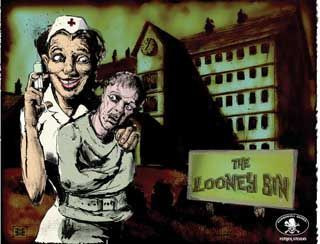 The Looney Bin is a deduction game with fast action - reaction card play that depicts the uproarious occurrences of an insane asylum. The object is to be the first to heal all the patients in your ward by treatment with various therapies. Non phasing player action ability keeps everyone involved for very little down time. Contains 35 patients, 90 staff and action cards, 35 symptom tiles and plenty of therapy chits.
