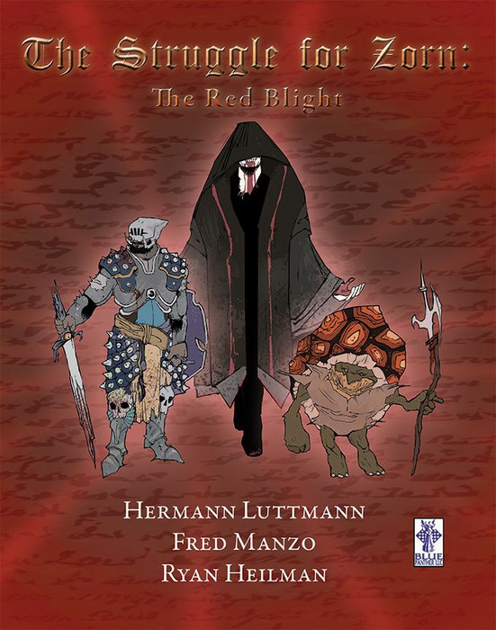 The Struggle for Zorn: The Red Blight is a 1-5 player semi-cooperative fantasy wargame. Players collectively represent the various Houses of the Kingdom of Zorn, and these Houses have joined together to defeat the existential threat of the vile Red Blight. The Red Blight is an evil entity that has just launched an invasion of peaceful Slumbering Troll Valley, the northern-most province of the kingdom. The monsters of the Red Blight are now holding the citizens of the valley hostage and have absconded with the province’s valuables, treasures, and vital resources. The Houses have been summoned by King Rufus V of Zorn to launch a Royal Crusade to free the valley and rid it of this blight. The game’s players will each control a Commander, a Magic User, and a House Army, made up of various types of military units. Each player attempts to defeat enemy units and capture Treasure Tokens, and by so doing earn Glory Points. The player scoring the most Glory Points will be awarded with the title “Hand of the Crown” and win the game. However, players must cooperate and assist each other as well. If the Red Blight achieves certain conditions, all the players lose the game, regardless of their situation or amount of Glory Points. If players can stave off The Red Blight’s attempt to exploit the valley for four full days, the monsters will lose access to the malignant power that sustains them. If this evil has been successfully thwarted, peace and freedom will be restored once again to the valley and one of the intrepid Houses will gain the ultimate royal reward. Will you become Hand of the Crown, Sire?