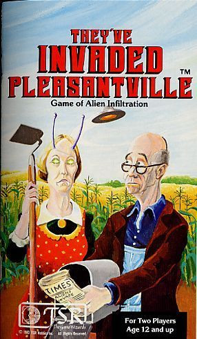 "They've Invaded Pleasantville" minigame is a two player wargame of secret invasion by Space Invaders. One player, the Alien player, moves the Alien-controlled and uncontrolled pieces, and the other player, the Town player, moves the Town-controlled pieces. There are 12 game turns in this game. In any given turn, playing pieces representing various townspeople will be moved across the gamemap, which is a map of Pleasantville.