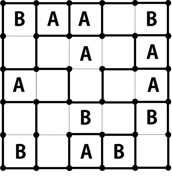 - Connect two adjacent dots with an orthogonal line segment.
