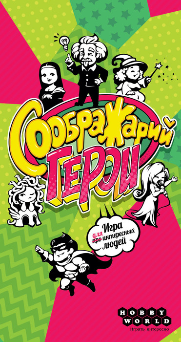 СообÑажаÑий: ÐеÑои ("Think it up!: Heroes") is a new version of the famous board game for cozy little companies and grand parties. This time you have to quickly remember the most famous people of different times and nations! Don't forget about your sense of humor too: the name of one of your rivals can be a suitable answer to a tricky question!