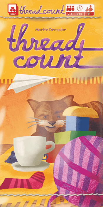Thread Count is a quick roll-and-write game for two or more players. The goal of the game is to collect as many socks, paper airplanes and mice as possible by extending the thread of wool over the carpet towards the cat's paw. Tipping over porcelain cups should be avoided.