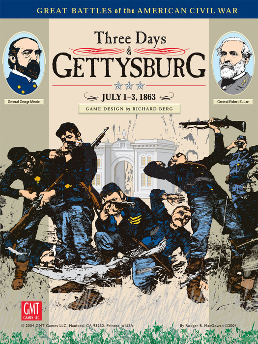 This third printing of the award-winning initial game in GMT's GBACW series offers upgraded components and information throughout. If you own the original 1995 edition of Three Days of Gettysburg, or if you have the upgrade kit, you can continue playing those versions with no problems; those versions still stand the test of time quite well. In this Special 2004 Edition of Three Days of Gettysburg, we've done our best to improve and enhance the components and rules to this already classic game.