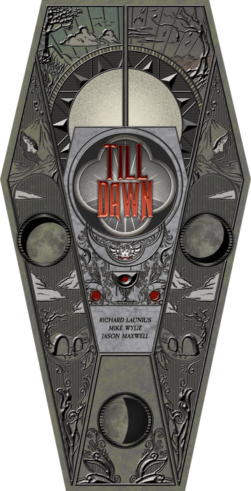 Till Dawn comes in a coffin-shaped box with approximately 120 cards, more than one hundred tokens, eight character cards, and a "night advancement" track. (An additional pack of four characters will be available to expand your game to 12 players.)