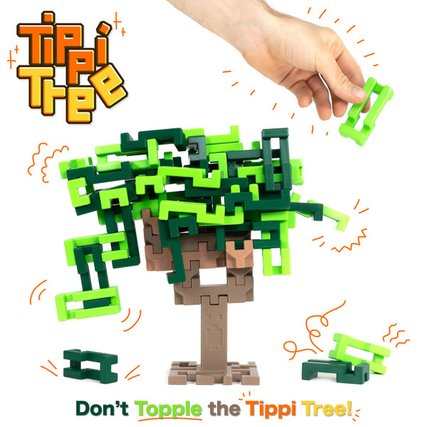 This stacking game features a unique S-shaped Leaf piece that connects to other Leaves in over 60 unique ways, so every Tippi Tree grows differently. That makes this game fun and challenging for anyone from age 6 to 106.