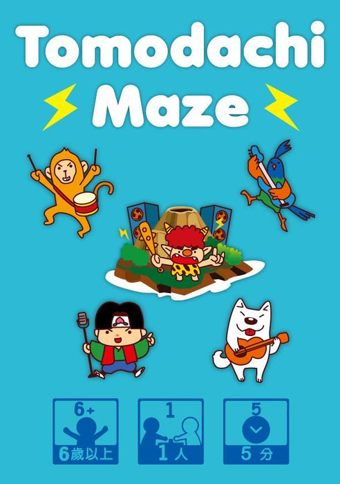 Tomodachi Maze is a small, solitaire, maze game based on the Japanese Momotaro folk tale. Two double-sided cards are included as the play surface. Players start at the center of of the start card and move around the paths until they reach the edge of the card. At that point, you can do one of two things: