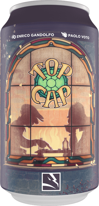In Top Cap, each player starts with four bottle caps in their color on a 6x6 grid; the corner of the grid closest to them depicts a bottle in the matching color.