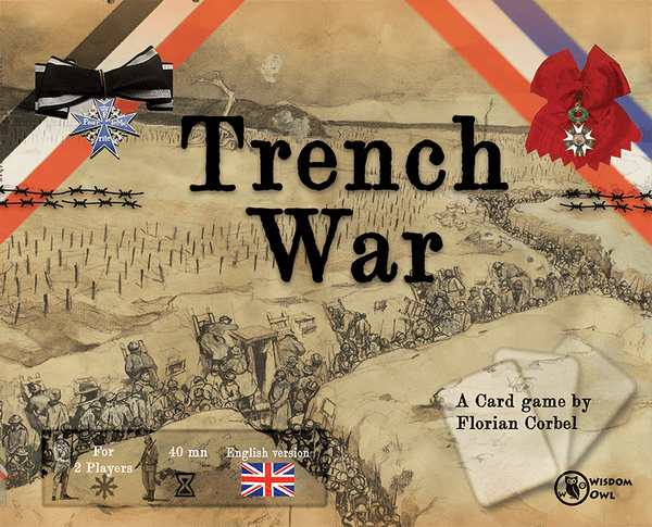 Trench War is a two-player card-based game which transports players into the waning months of World War I. This tactical battle has easy-to-learn rules that will allow the play of a complete game in approximately 40 minutes. Use the specific advantages of your troops and bolster them with offensive bonus cards to gain ground into your enemy's trenches, and use defensive bonus cards to keep your opponent out of your own. Don't let him invade your territory! Trench War plays quickly, has a high excitement level, and is perfect for casual and serious players alike.