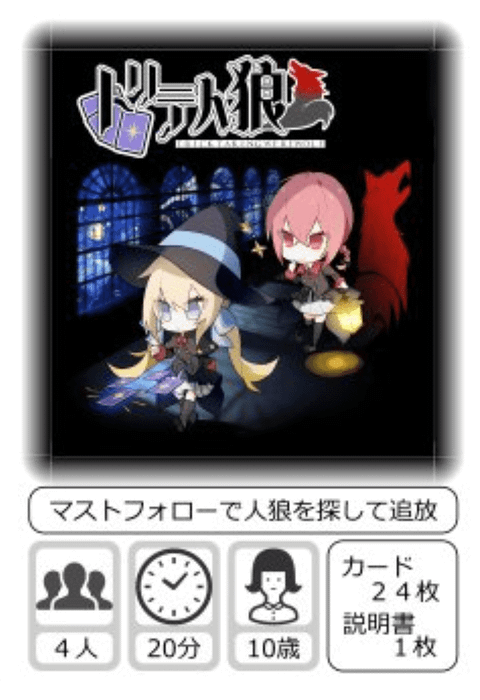 A small game that requires only 5 tricks. As the name suggests, it's a game that combines trick-taking and werewolf.