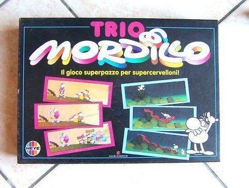 Memory variant in which each player flips open three (out of 90) tiles with comic strip pictures. When the three form an actual story, the player can keep them. If not, the tiles are flipped back again. The player with most tiles at the end of the game is the winner.