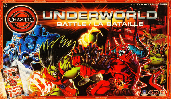 Set in the Chaotic universe and packed with 25 miniatures and 3D components, Underworld Battle has the players taking the role of OverWorld heroes fighting monsters as they advancing through the UnderWorld City Battle Arena. The game ends in a climatic battle against Chaor, the Underworld's ruler.
