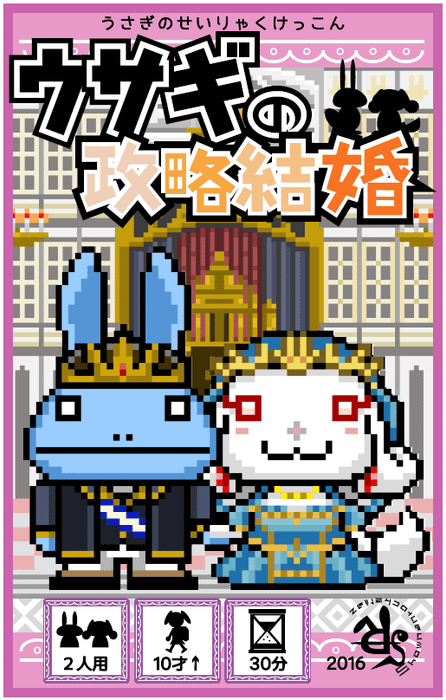 ã¦ãµã®ã®æ¿ç¥çµå© (Usagi no Seiryaku Kekkon) in English means 'Rabbits' Political Marriage'. It is a two-player co-operative game. Two rabbit nations, which have been hostile to each other, try to form a marriage between their prince and princess before the hostility leads to a war.