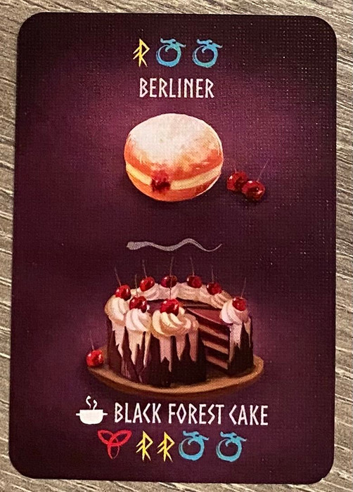 Valheim recipe card for Berliner / Black Forest Cake. Spiel 2024 promo card, given for preordering Valheim: The Board Game.