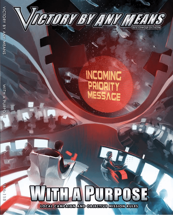 With a Purpose is the next supplement book for the modular Victory By Any Means campaign system with a focus on objectives and goals. Campaigns have a tendency to focus on goals and exclude the story element. This expansion has a more granular scope, focusing on a commodore instead of a supreme commander. Instead of an open ended campaign, players are working to achieve victory points.