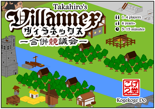 Now each player chooses four of the six cards and shows them to everyone. Then, each player simultaneously picks two cards and puts them on the table, deciding whether to produce the left or the right products. Finally, each village (consisting of two cards) is scored. Each card has a text explaining the points it yields, sometimes depending on one's own products or everyone else's or a mixture of these. The highest scoring village wins.