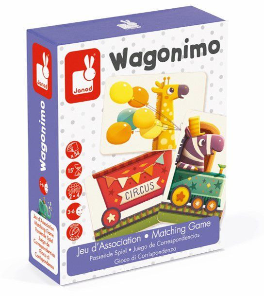 With the Janod Matching Game, Wagonimo you must be the first to reconstruct your 5-carriage train with all of its animals by taking it in turns to roll the dice.