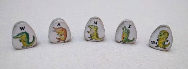 The game purpose is to collect five different crocodiles. The game starts with 20 playing pieces placed face down, then each player takes 5 pieces and keeps them hidden from the opponent. During the game you will be exchanging your pieces for the pieces on the table or your opponent's pieces, or showing your pieces. The game consists of four matches. The match ends when you show five different crocodiles, and you get 5 points minus a point for each pair.