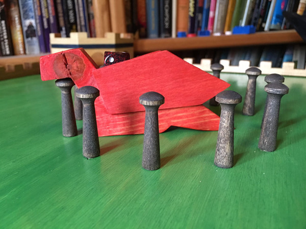 Fireball dice are placed on the Dragon’s back, between the wings. Dice are flicked off the Dragon’s back from this position in the center ring.