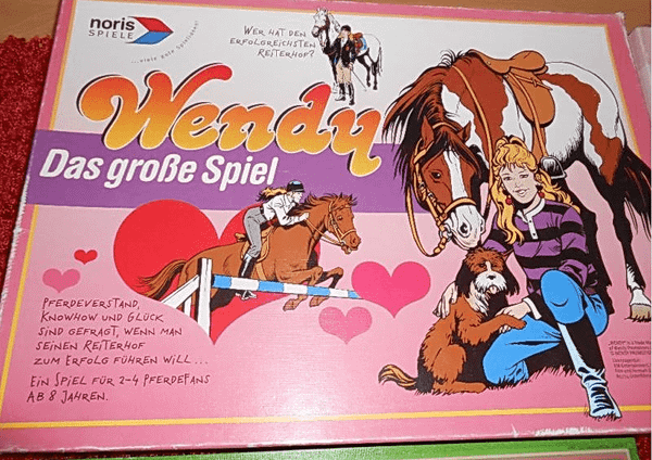 As a owner of a riding stable each player moves along a circle according rolled number; the space you are landing on requires certain activities like giving correct answers, buying horses, participating in tournaments, 'event cards' (scandals)...