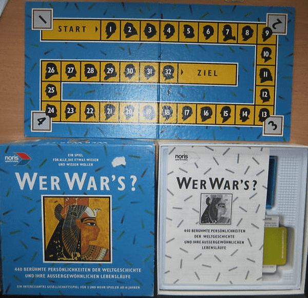 This game contains about 400 cards with famous people. One player reads out bits of information about those people, and the earlier the other players know who he/she is talking about, the more points they get to proceed their pawn toward the goal.