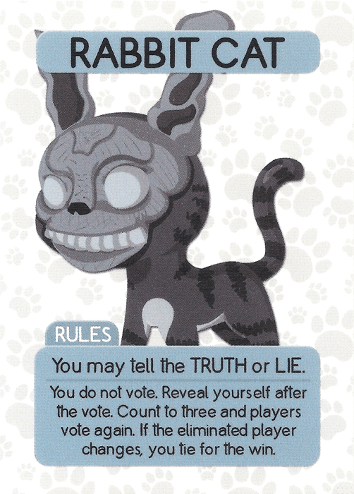 Sticking with the theme, but bringing in the tangential universe, we have a Rabbit/Cat that makes players take back their votes and vote again.