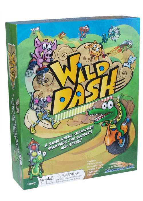 Wild Dash is the card game where animals race to the finish line! Players compete to get the best score by racing with fun animal cards. Reveal your animal card, then add booster cards to propel your animals to the checkered flag at the finish line.