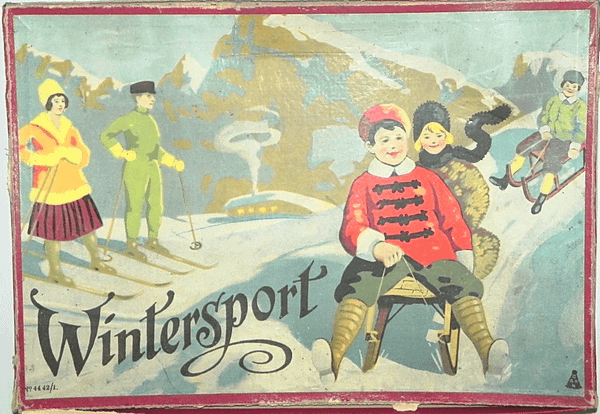 Typical 'Roll & Move' game from the 1910's in Germany. Roll the die by turns and step forward - until you end on a special field - follow instructions glued on lid inside.