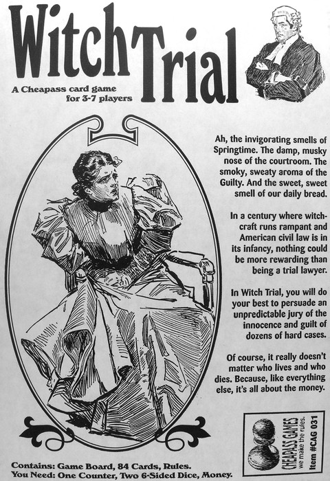 Players represent lawyers in this humorous, pseudo-Colonial courtroom trial card game.