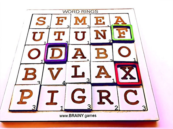 Use rings to control critical locations, from which one or more words can be formed in any direction. Target as many words as possible in each round. Be the first player to reach a preset target score to win the game.