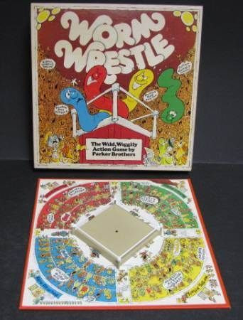 A game where each player has a collection of worms. These worms are placed in a wrestling ring and an electric switch is turned on. This spins a tiny magnetic spindle that the worms are stuck to. When a worm falls out of the ring the owner of the worm pays a fine. The last player with a worm in the ring collects the cash.