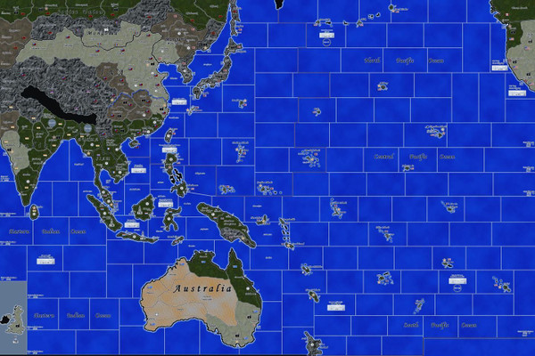 The game consists of a beautiful 4’x6’ rolled-up map board of the Asia & Pacific Theatre – from Aleutians to Ceylon and from Novosibirsk to Fiji; as well as files for all of the necessary charts, unit counters and rulebook on a disk. Players will need to print and mount the counters which have all been sized to accommodate miniatures which players can purchase and paint to their taste.
