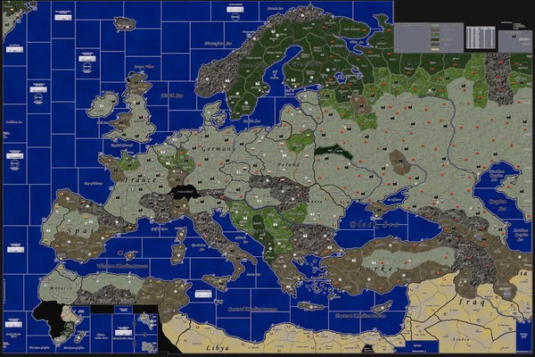 The game consists of a beautiful 4’x6’ rolled-up map board of the European Theatre – from the Urals to the Atlantic and from Murmansk to the sands of the Middle-East; as well as files for all of the necessary charts, unit counters and rulebook on a disk. Players will need to print and mount the counters which have all been sized to accommodate miniatures which players can purchase and paint to their taste.