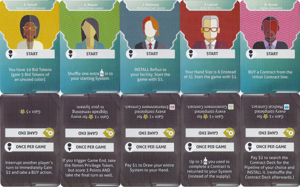 The Sci-Fi Contracts propose three contracts with a science fiction flair to them. The Profiteers are five player roles that introduce individual player powers in the game, and the Business Tactics are five "superpowers" independent from the Profiteers that provide individual abilities for greater variability and replay value.