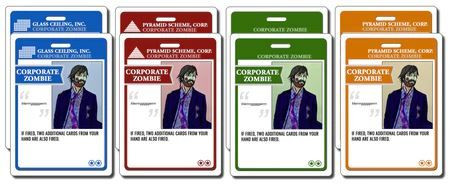 A Corporate Zombie has no ability, and can be played to the break room with no effect. If a Corporate Zombie is fired, it takes two more employees to the Unemployment Line with it.