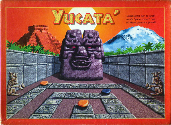 Simple movement game themed on Mayan graphics. Players have 7 cards (numbered 1-5 and 2 actions) and leapfrog their stone down the track. There are initial stones laid on the track and you collect them as you pass. According to their color, you throw stones away at the end, most stones left wins. The game has different variants of the initial layout.