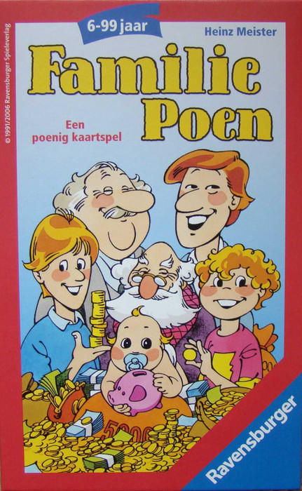 A simple game about getting rid of your hand of cards. All players must match a drawn card (by value or colour) in order to get rid of it. Higher valued cards (showing elder members of the Zahlemann family) take precedent over younger ones so getting rid of the baby is the toughest. Once one player goes out, the other players must pay the value of their remaining cards.
